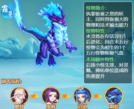 另一个副本凛冬终幕的流程和煌焰燎原的很类似,只不过要挑战的怪物有所不同,就不多赘述了。最后要消灭的则是执掌极寒之息的妖主霜影,同时具备强大的物理法术输出能力,少侠可要小心应对啦。