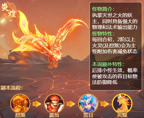 少侠需要前往三处场景收集碎片,过程中难免要和强大的怪物战斗。怪物会有各种特性加持,少侠需要针对性地调整战术,逐一消灭。集齐三枚碎片后,一起来消灭执掌灭世之火的妖主——炎煌吧!