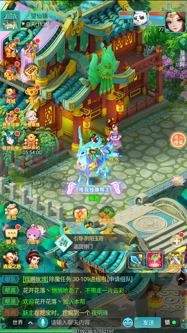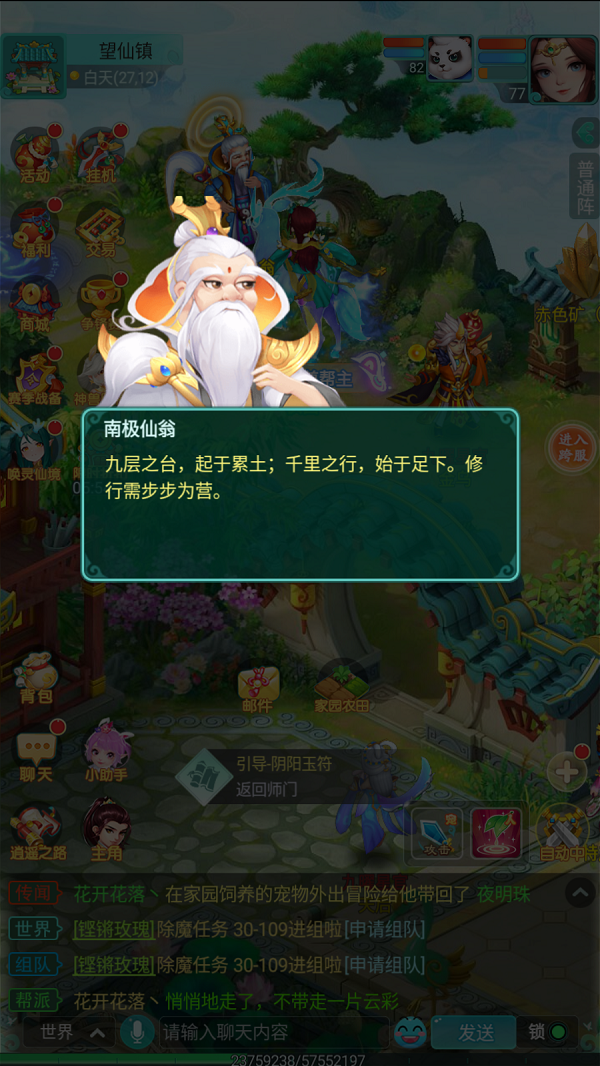 在此处,你可以与南极仙翁品茗论道,漫步于青翠竹林中,欣赏蜻蜓点水的雅趣。当冒险旅途感到疲惫时,不妨来望仙镇小憩片刻,感受扑面而来的灵气,让身心得到彻底的放松。