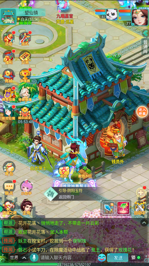 望仙镇的独特魅力源于其得天独厚的地理位置:北邻凌霄殿,东接灵台山,两大仙界圣地日夜散发着充盈灵气。若在此长住,定能感受到仙气对身心的滋养,过上神仙般的惬意生活。