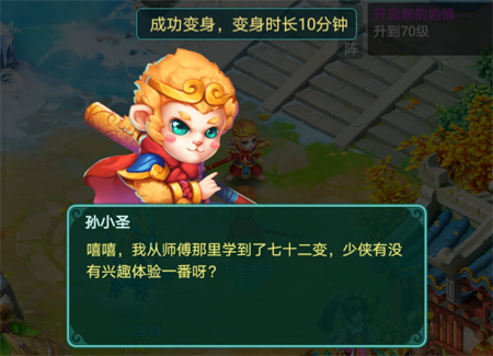 若在路边发现名为"孙小圣"的灵猴**,恭喜你触发了有趣的变身奇遇。对话后得知,这只小猴刚学会七十二变,为了向你展示神通,它会施法将你也变成它的模样。这场出人意料的变身体验,定会让你会心一笑。