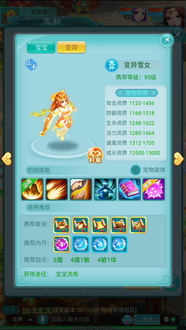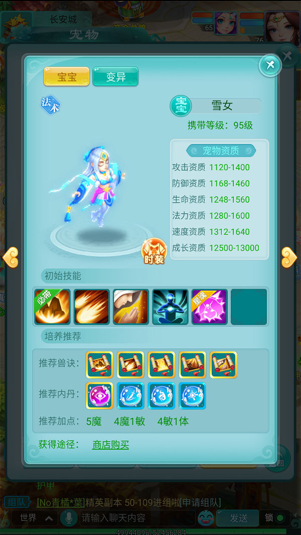 雪女绝非徒有其表,她的实力同样令人瞩目。变异后的雪女法力资质高达1664,生命资质亦达1622,更惊人的是速度资质突破1705大关,其迅捷身法堪称风驰电掣。