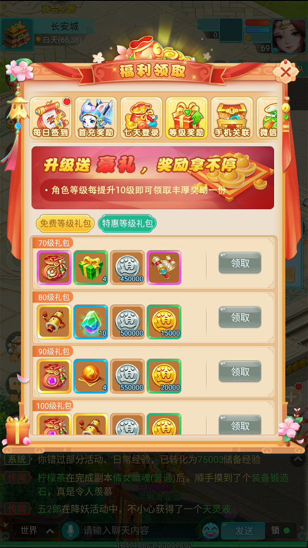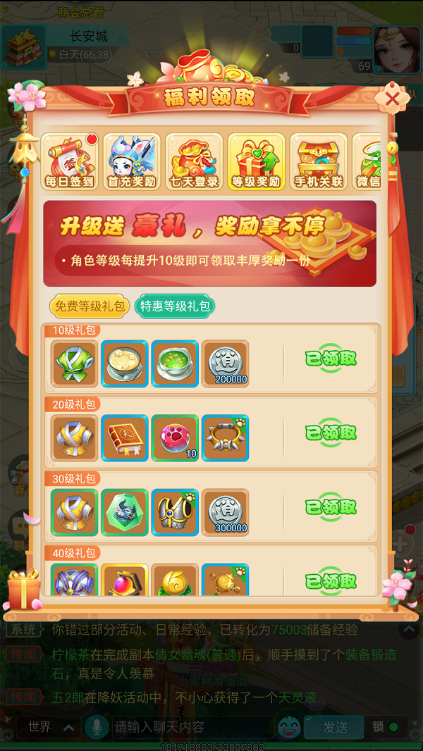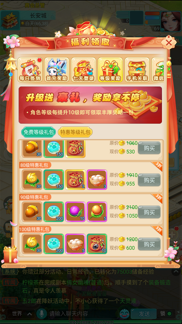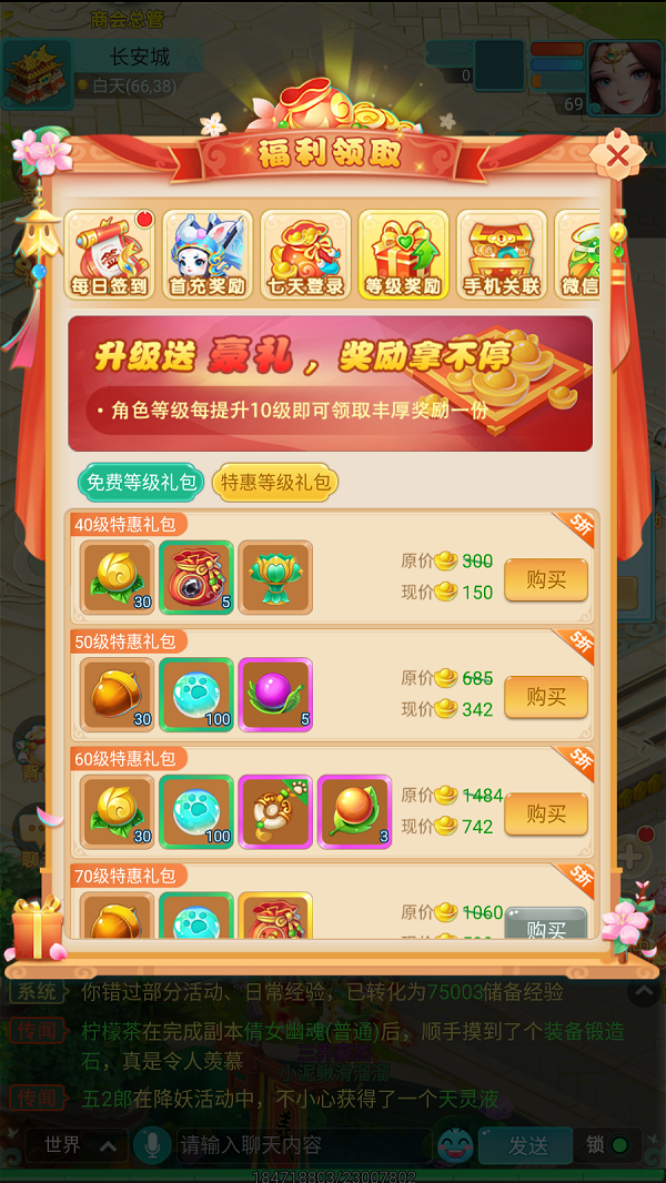 除了免费礼包,还有需付费但价格极其实惠的特惠等级礼包。这类礼包内含大量当前等级所需的珍稀道具,如超级重生丹、护符、鎏光盏等,堪称追求效率与极致养成的少侠们不容错过的超值投资。