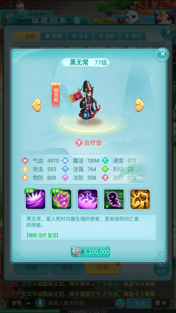 作为一名治疗型仙君,黑无常自身的生存能力相当可观——毕竟只有自己站得住,才能持续为队友提供治疗。这也符合其所属的幽冥殿门派特色:集干扰、治疗与辅助于一身,颇具“万金油”的风范。