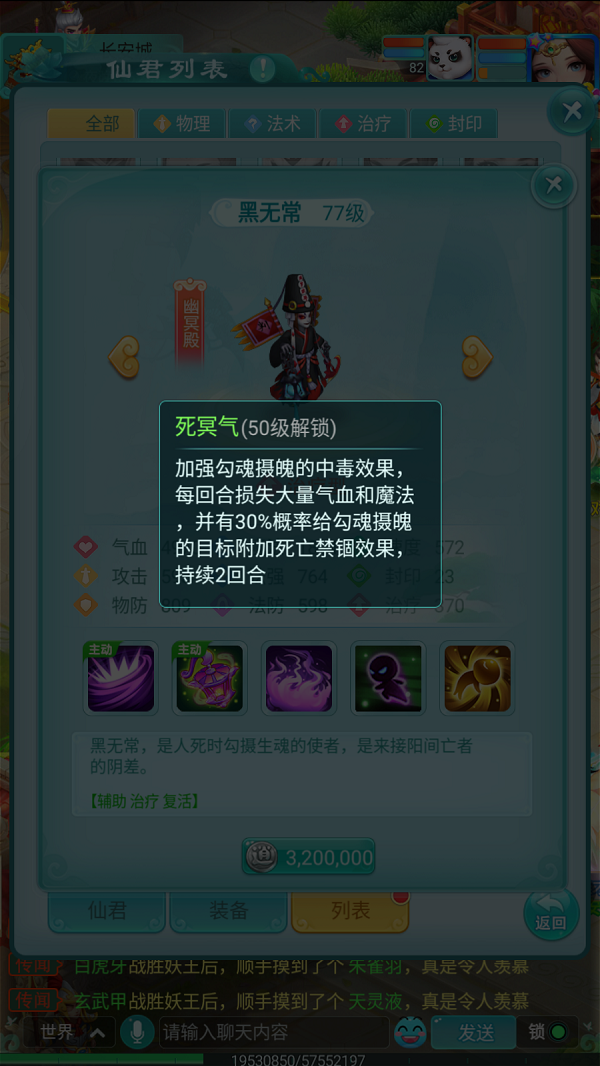 当黑无常达到50级,将解锁一项关键被动:不仅能强化“勾魂摄魄”的中毒效果,更有30%概率对受该技能影响的目标附加“死亡禁锢”状态。处于该状态下的敌方目标若被击倒,将在数回合内无法被复活,这一战术效果在实战中往往能发挥奇效,彻底打乱对手的部署。