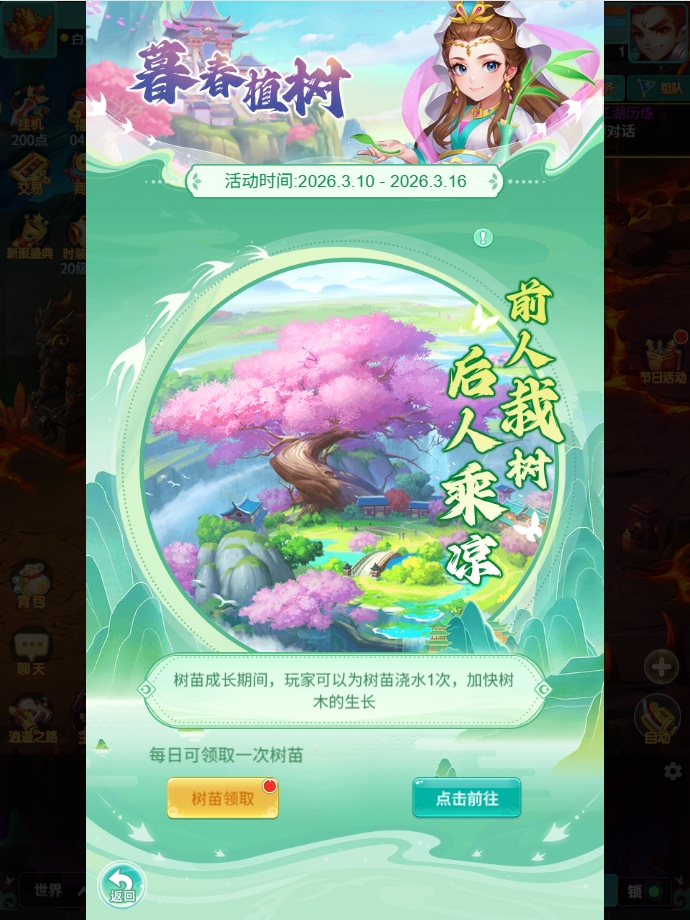 初春到来,你是否感受到春天的美好了呢?不过,想要让春天一直这么绿意盎然下去,必须多植树造林才行,这就不得不提《逍遥情缘》手游即将开放的三大植树节活动了。奖励多多,让我们一起来看看活动详情吧。