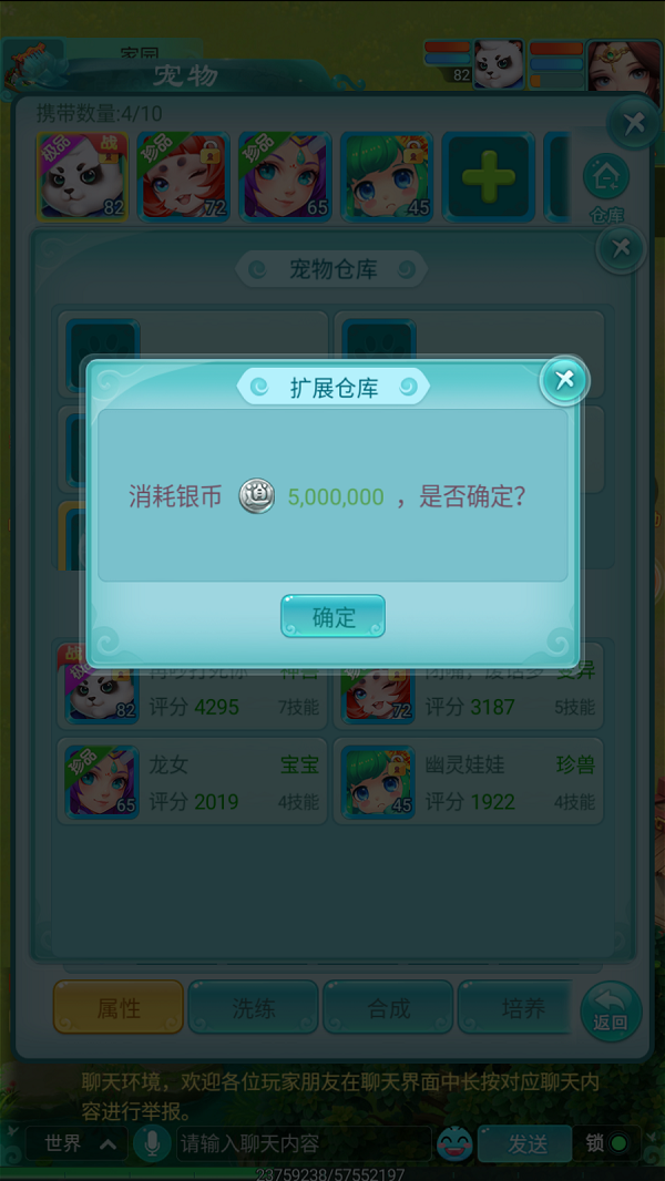 初始的宠物仓库容量也比较小,存几只就会满。不过同样可以使用银币来扩展它的空间。只要灵活运用道具仓库和宠物仓库,你的冒险之旅就再也不会为“东西太多装不下”而烦恼了。放心去闯荡吧,去收集更多的道具和宠物!