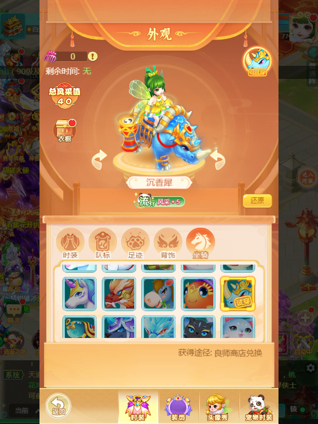 此外,良师商店中还提供一只专属坐骑——沉香犀。这是一款基础属性增加速度的坐骑,外形沉稳厚重,骑上去想必非常稳当。如果你骑着它在外面行走,别人一眼就能认出你是一位乐于**、桃李满园的好师父!