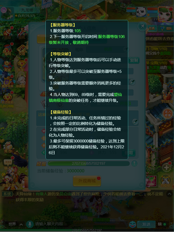 游戏有两个等级可供卡级,分别是69级和89级。或许有少侠担心卡级会导致内容匮乏,经验浪费,但实际上每个阶段依然有丰富的活动可供参与,更有"经脉"这类持续消耗经验的成长系统,完全不必担心资源闲置。