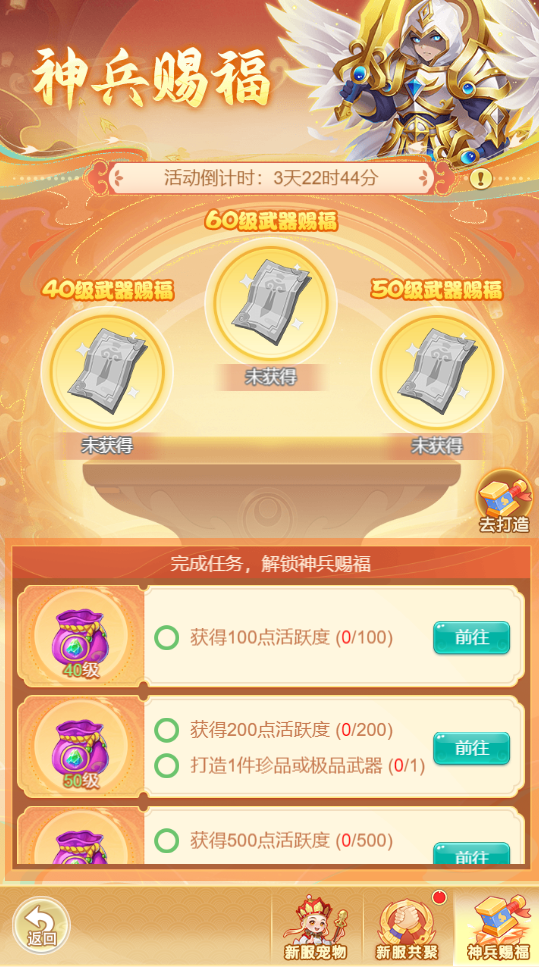 (1)完成神兵任务可领取道具奖励并激活对应等级的神兵赐福;