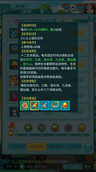 想挑战十二生肖,角色等级需要达到60级以上,并且必须组队才能发起战斗。胜利之后,高级兽诀、稀有道具都有机会收入囊中。不同生肖的机制千差万别,有的擅长爆发,有的擅长消耗,有的甚至还会互相配合——你能摸清每一只的套路和破局之法吗?